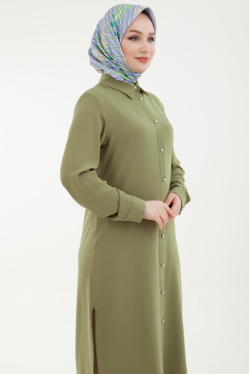 ARMİNE TREND Kolu Manşetli Düğmeli Tunik Yağ Yeşili, kalitesi ve modern tasarımıyla öne çıkarken, kullanılan malzemelerin kalitesi de göz ardı edilmemiştir. Tunik, uzun süreli kullanıma uygun dayanıklı kumaşlardan üretilmiştir. Ayrıca, özenle seçilerek dikişleri yapılmış ve her detayıyla kalite standartlarına uygun bir şekilde üretilmiştir.