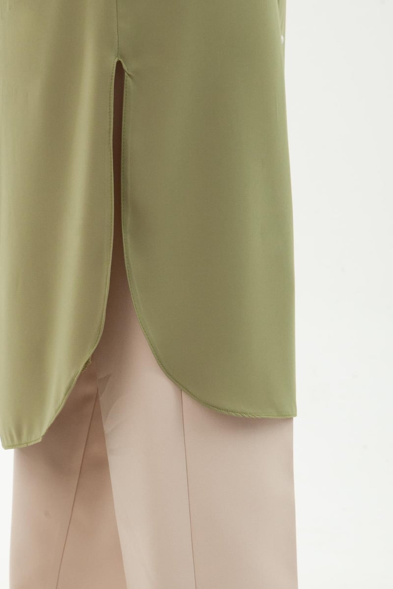 Yağ yeşili rengi, bu sezonun popüler renklerinden biri olmasıyla birlikte, tuniğe modern ve çarpıcı bir hava kazandırır. Ayrıca, rengi sayesinde kolayca diğer parçalarla kombinlenebilir ve farklı tarzlar oluşturulabilir.