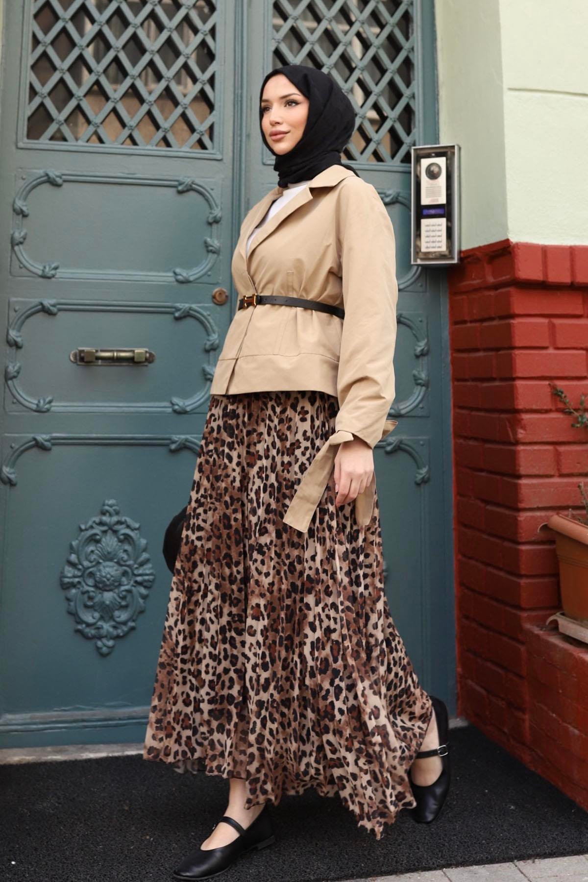 ModaEnsar Pileli Leopar Etek - LEOPAR
